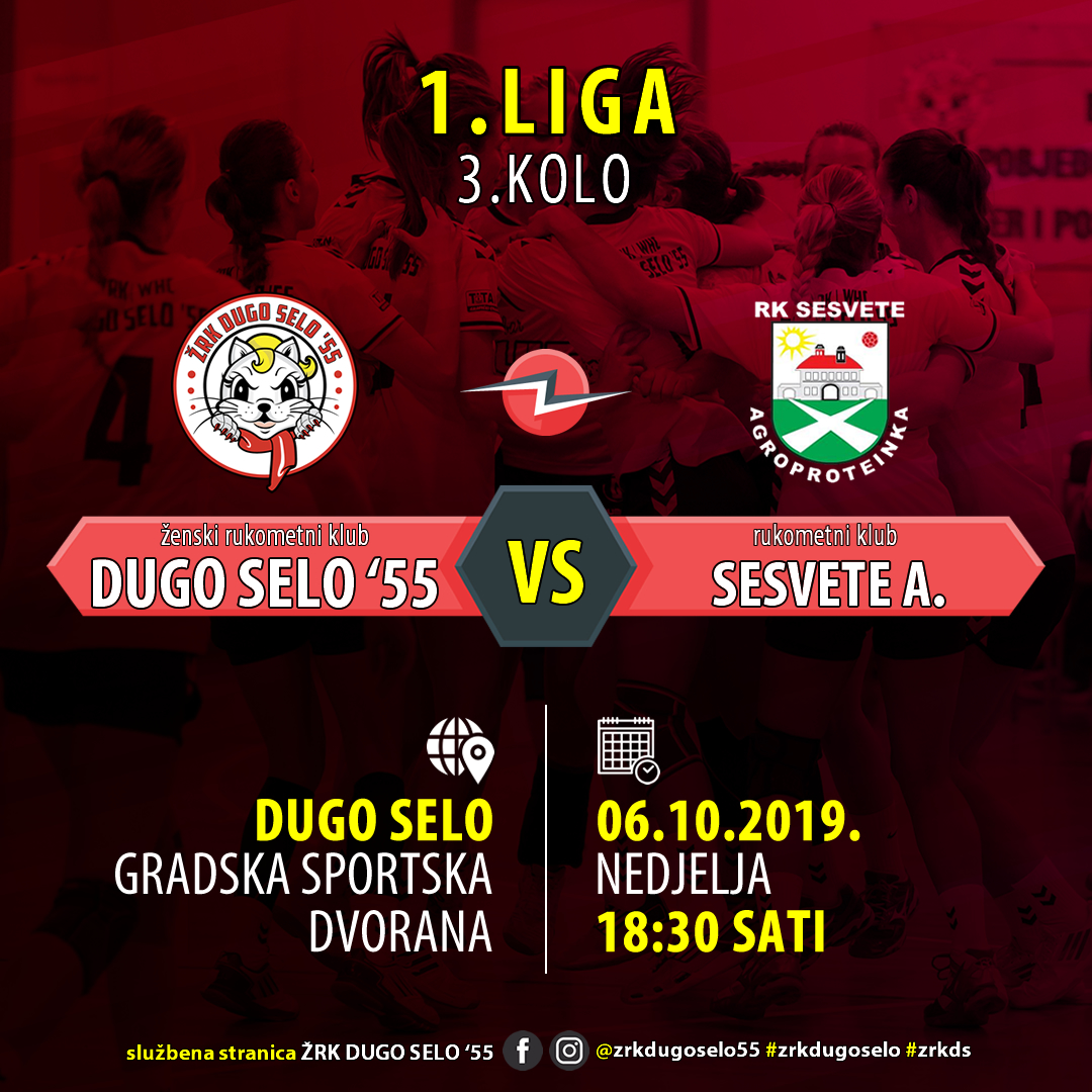 U nedjelju 6. listopada 2019. god. u sklopu 3.kola 1.Hrvatske rukometne lige za žene odigrati će se susjedski derbi između domaće ekipe ŽRK Dugo Selo ’55 i gošći iz Sesveta, ekipe RK Sesvete Agroproteinka.