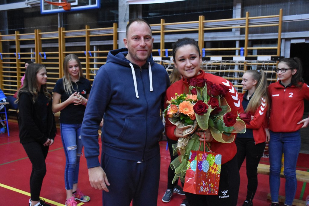 A baš po isteku šezdesete minute mlađe igrače Rugvice svojoj su trenerici prigodnim poklonom i ružama poželjele sve najbolje za rođendan.
