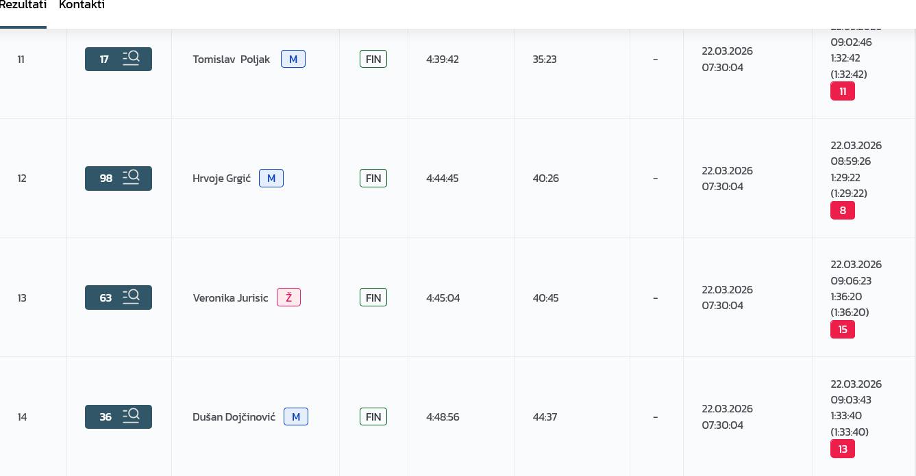 Supermaraton je trčao i Dugoselac Matej Barilić i utrčao u cilj kao devetoplasirani muškarac (vrijeme 5:44:19) u kategoriji Veterani 2, odnosno zauzevši 34. mjesto u ukupnom poretku muškaraca.